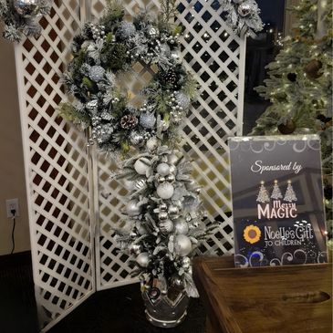Silver garland, wreath and 3 ft. tree in a crown planter