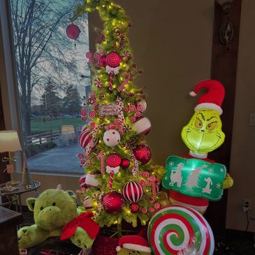 Fun and whimsical Disney Lilo and Stitch themed 7.5ft green tree with a Lilo & Stitch comforter as a bedskirt.