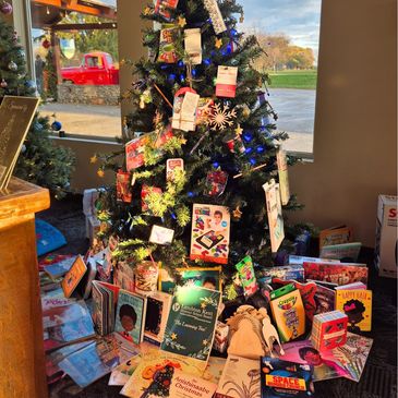 6-foot tree themed The Learning Tree with an endless amount of learning-focused toys, tech, books, games, puzzles, STEM kits, microscope, wireless earbuds, markers, glue, pencils and craft sets and gift cards galore!