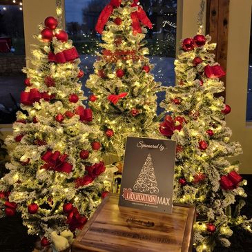 3 beautifully decorated 5 ft. pre-lit flocked trees, decorated in a traditional red. Includes Disney Enchanted toys & dolls nestled under.