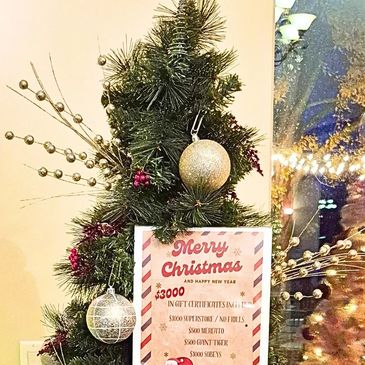 Approx. 3-foot planter tree in silver and red, which includes a total of $3,000 in Gift Cards!